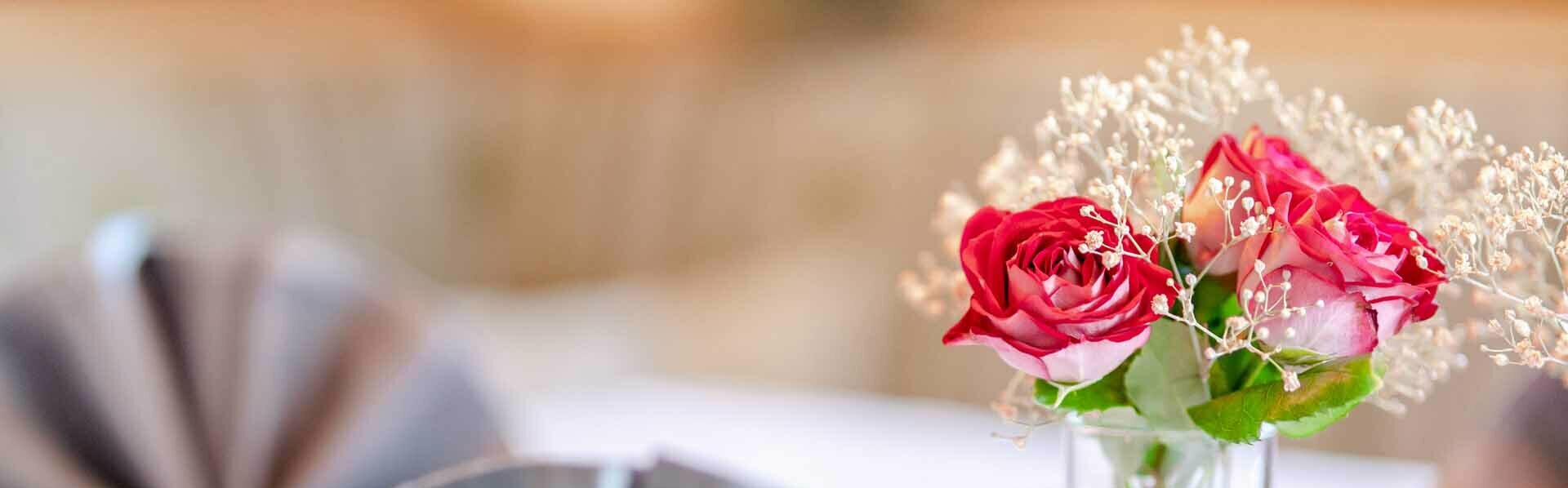 In the Alpengasthof Hohe Burg, our cosy dining room for up to 50 people is available for your celebration. The mountain world is always visible through the windows. When the weather is right, our sun terrace is the ideal place to start the party with a champagne reception in front of the powerful panorama of the peaks.