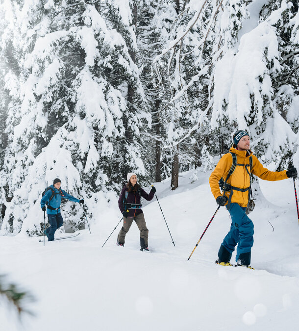 Stärke dich bei einem zünftigen Frühstück, packe Tourenski, Rucksack und Stöcke und stapfe los, hinein in die endlos scheinende verschneite Landschaft.